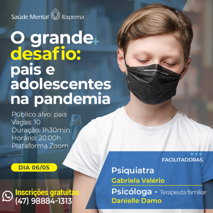 26 de janeiro de 2024 O grande desafio – pais e adolescentes na pandemia Como manejar o isolamento social, o ensino remoto, a dinâmica familiar, com saúde mental?O que fazer quando aparecem emoções e comportamentos disfuncionais? Continue Lendo